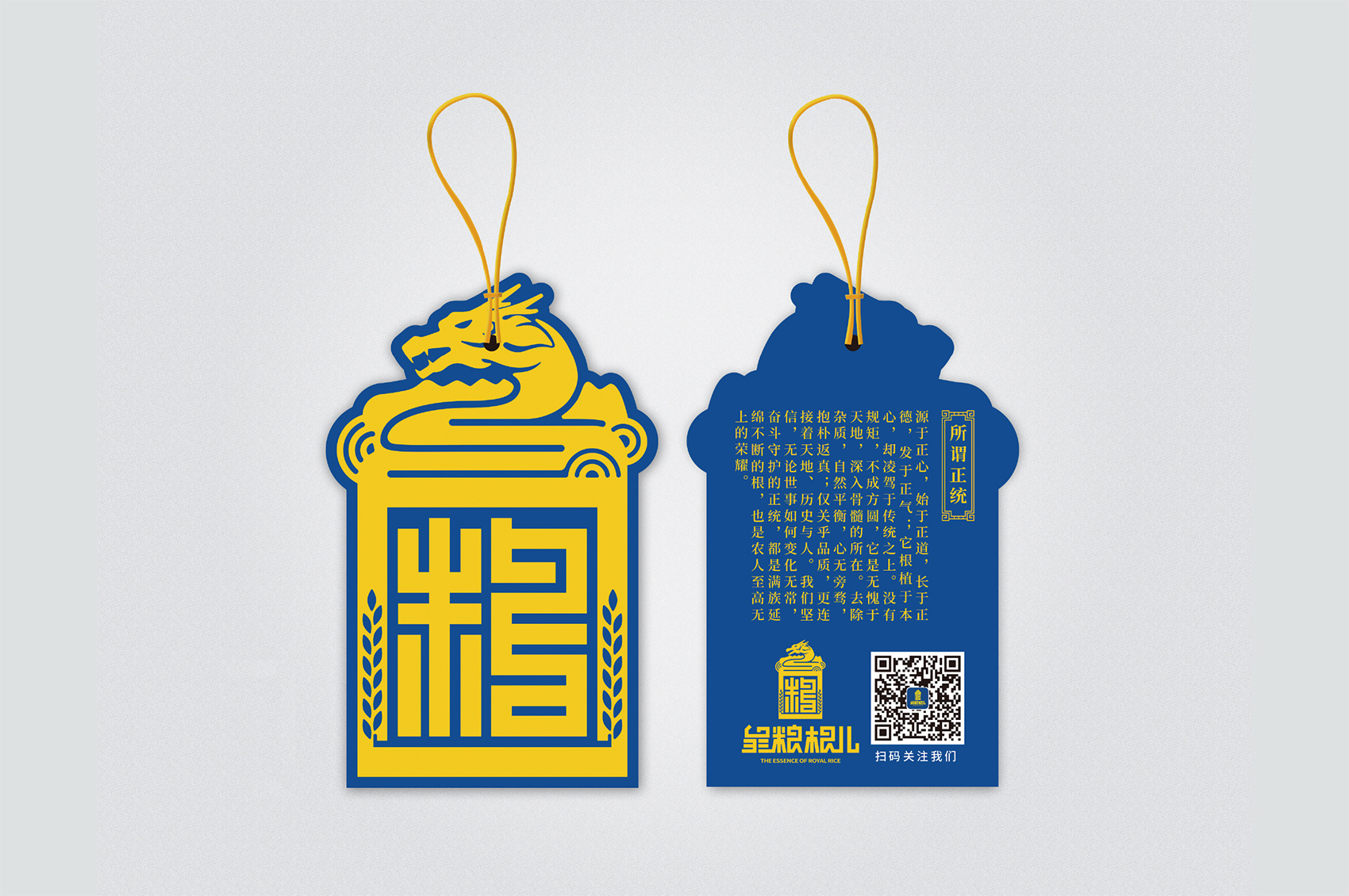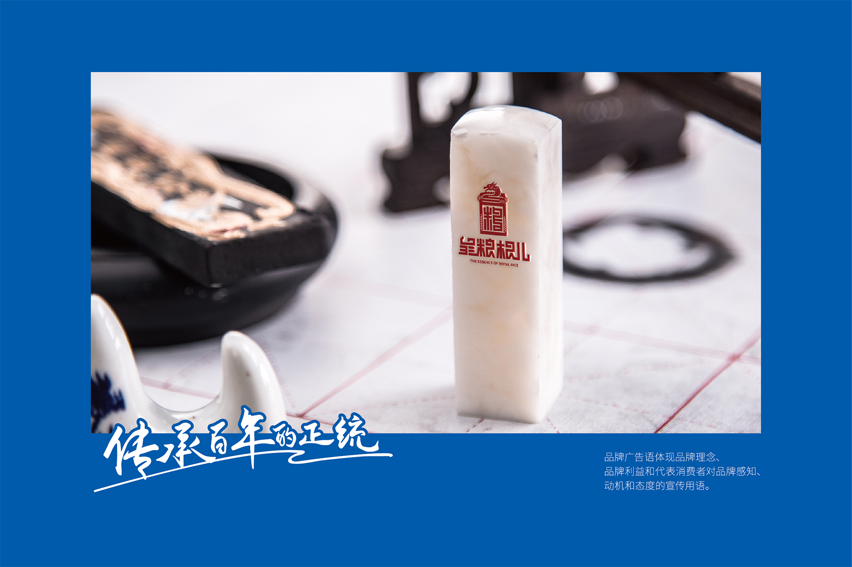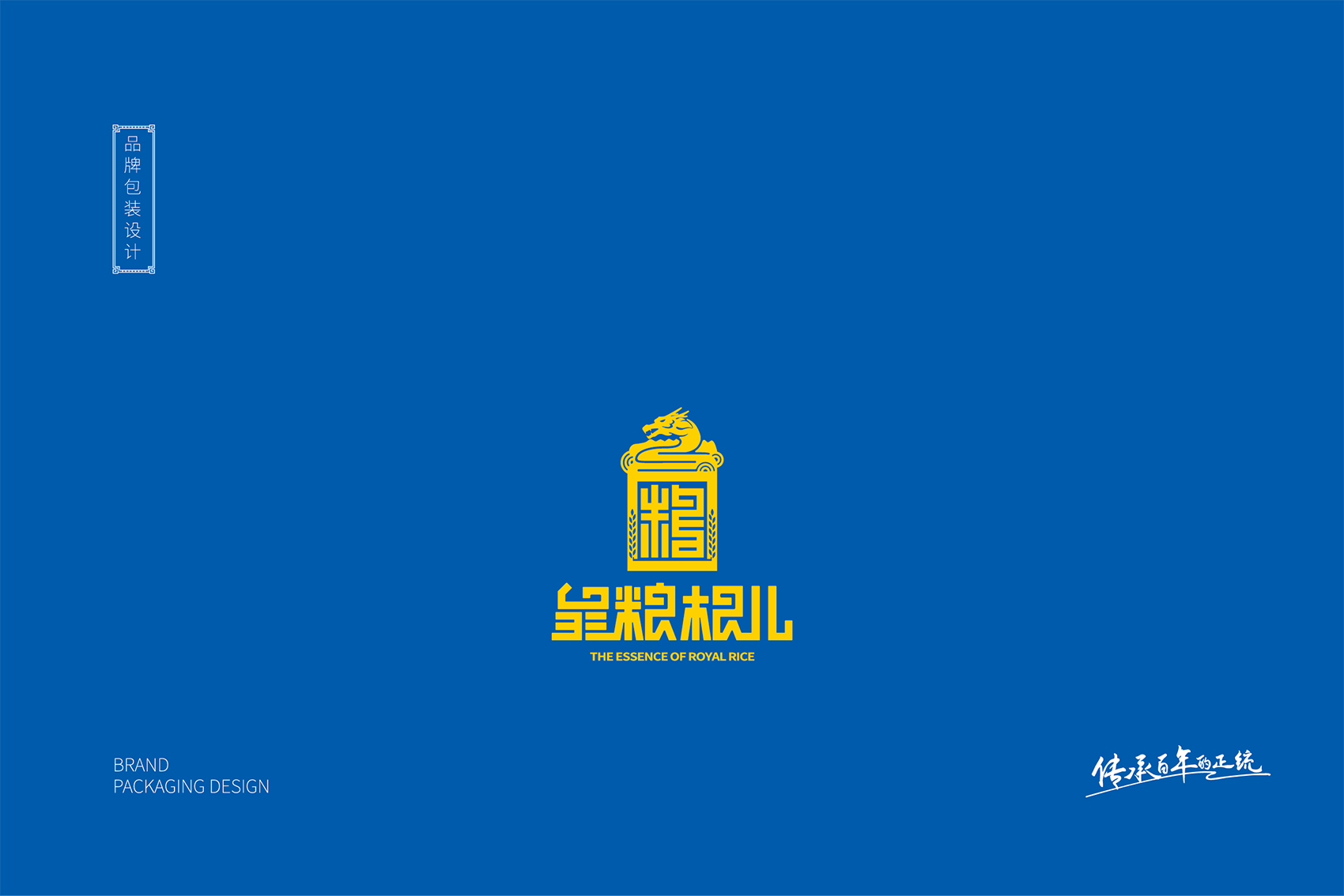 以兼顧理解與傳播度的slogan——傳承百年的正統成為了皇糧根兒不斷堅守與傳承的最好注解。皇糧根兒大米的logo采用了玉璽的形象來傳遞200年的皇室貢米內涵,其中的環繞其中的白山黑水象征著滿族的龍興之地,原創設計字體采用了乾隆年間玉璽篆字字體風格,將皇糧根三字都融為一體,整體可以視作“糧”字,配合兩旁的水稻紋樣點明了行業屬性,端莊大氣,頗具皇家風范,在具有設計感的同時,能夠將皇糧根=正統貢米的品牌印象植入消費者心智。