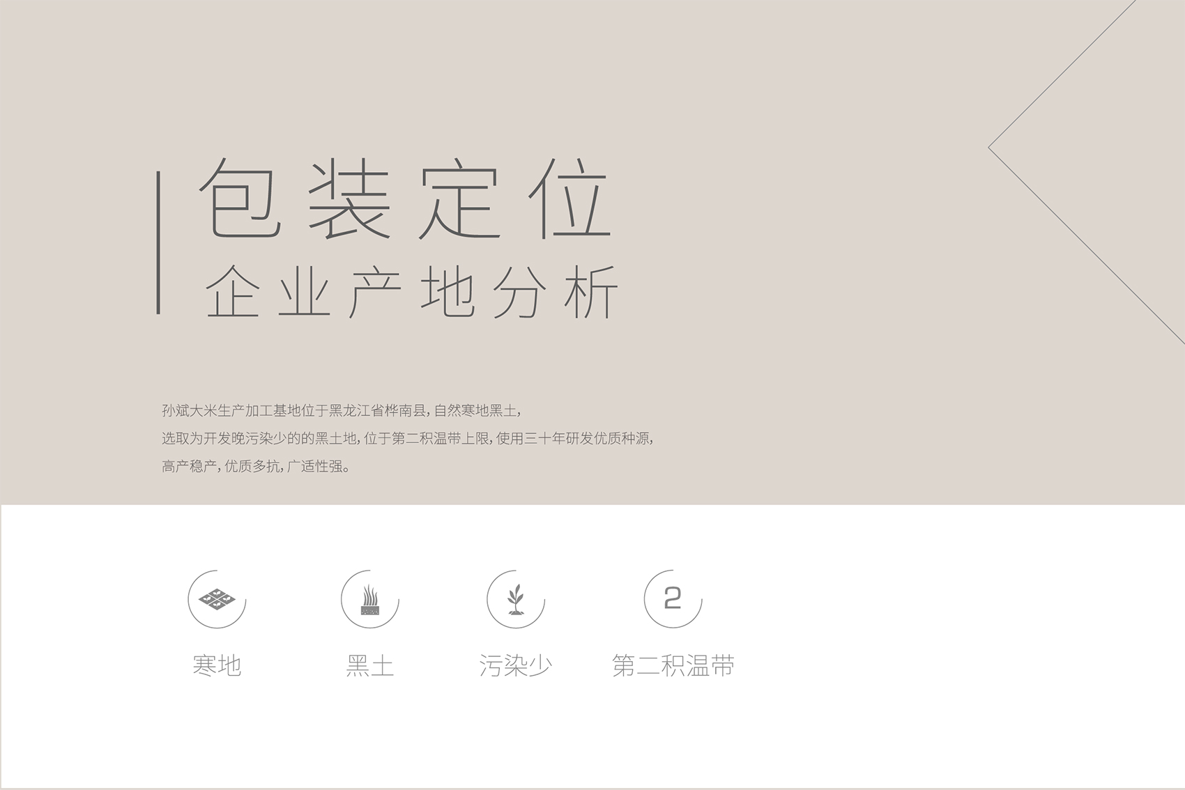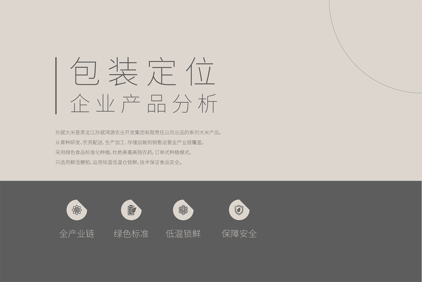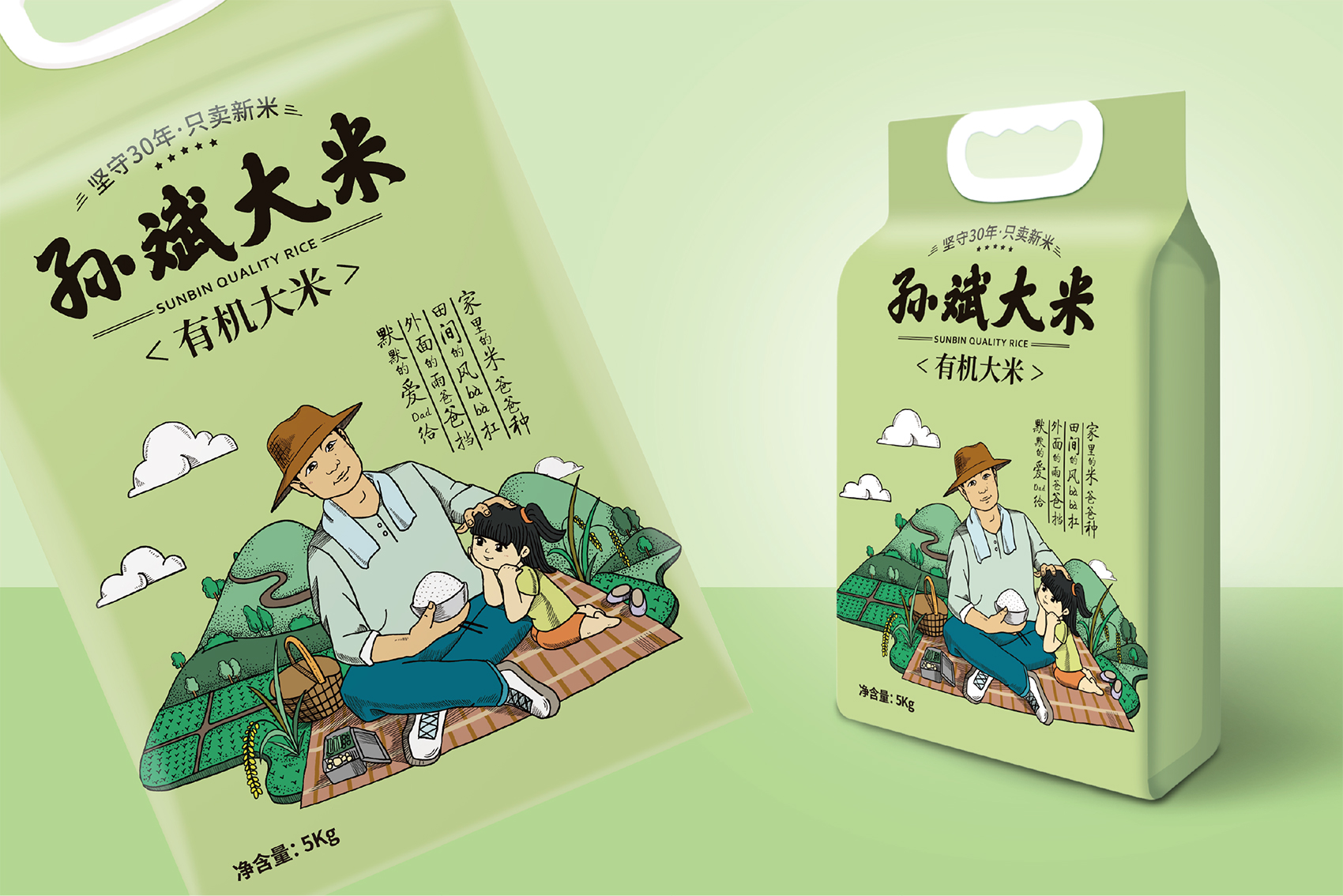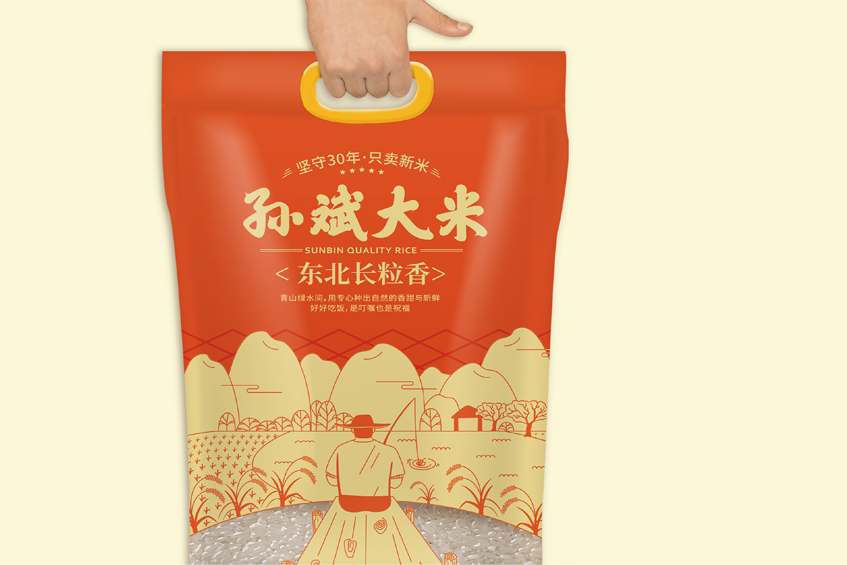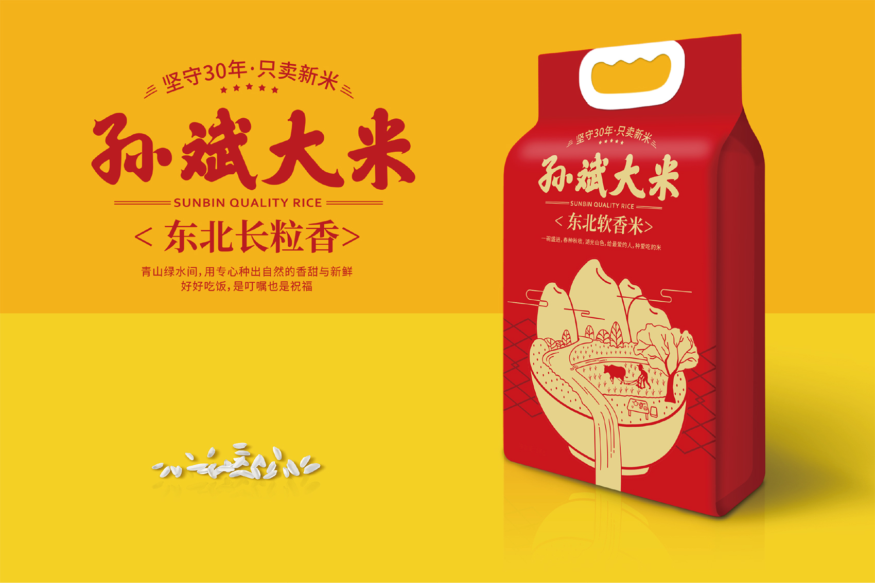 黑龍江孫斌鴻源農業開發集團有限責任公司成立于2009年3月5日,位于黑龍江省東北部樺南縣。集團下轄鴻源種業、鴻源糧油貿易和黑龍江寒地雜交水稻工程技術等多個公司,注冊資本6000萬元,年產值1.2億元,是一家集水稻科研、生產、收儲、加工、銷售和服務于一體的國家級產業化扶貧龍頭企業。旗下覆蓋多種稻米產品,如鴨稻米、胚芽米、珍珠米等,產品線復雜,產品種類繁多。 企業希望通過電商營銷,以點帶面將孫斌大米這一品牌植入消費者心智,但原有包裝風格各異,沒有完整統一的視覺符號無法傳達品牌形象,同業不能讓消費者辨識到品牌,無法達到品牌集群效應。