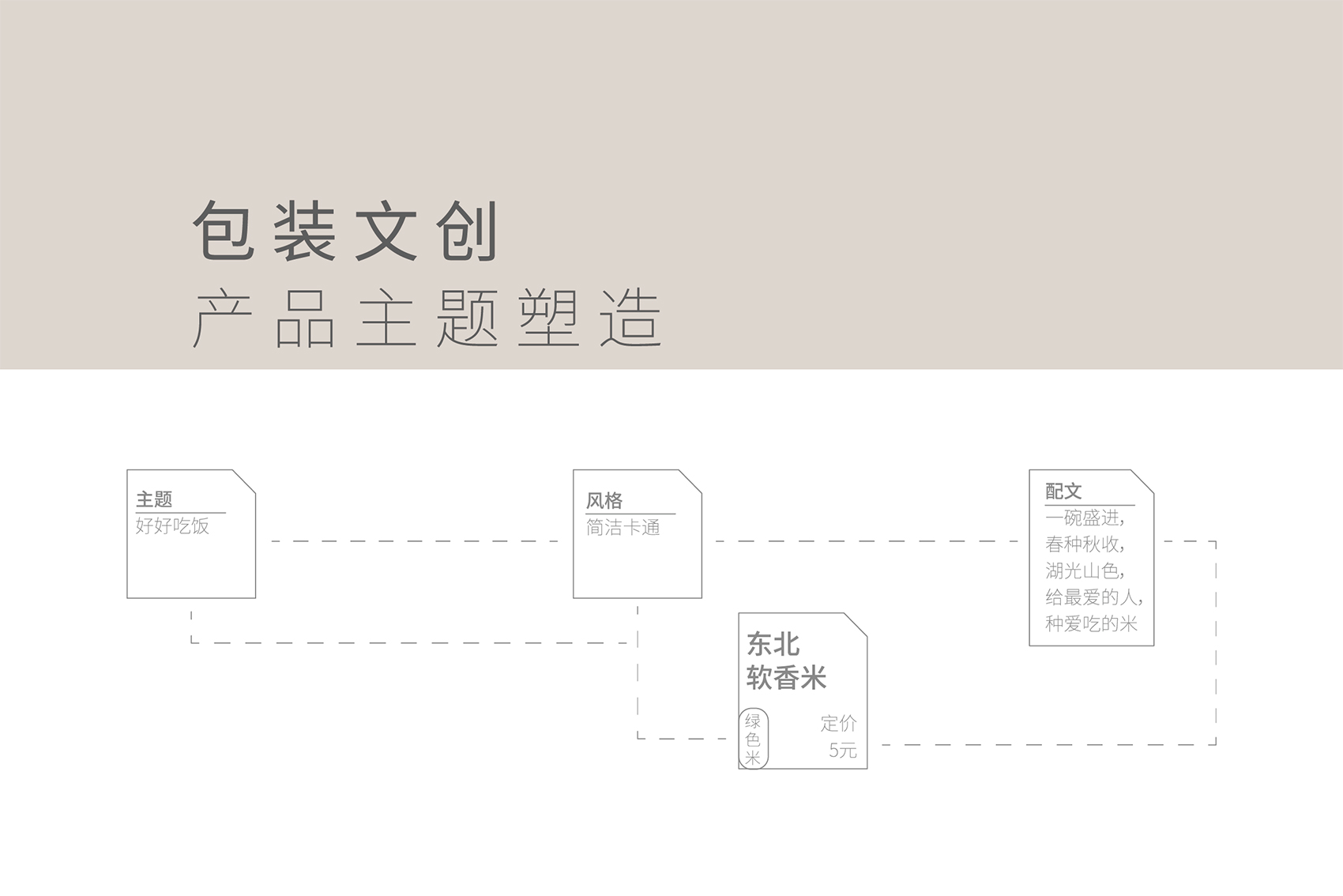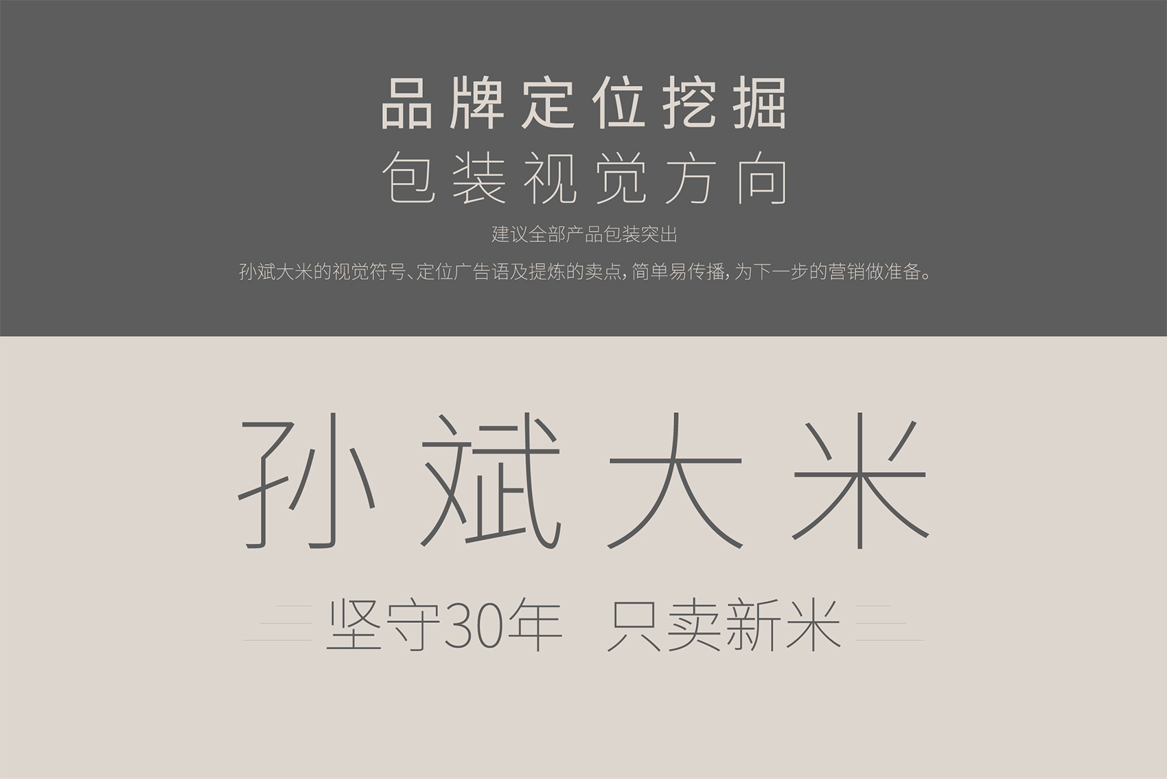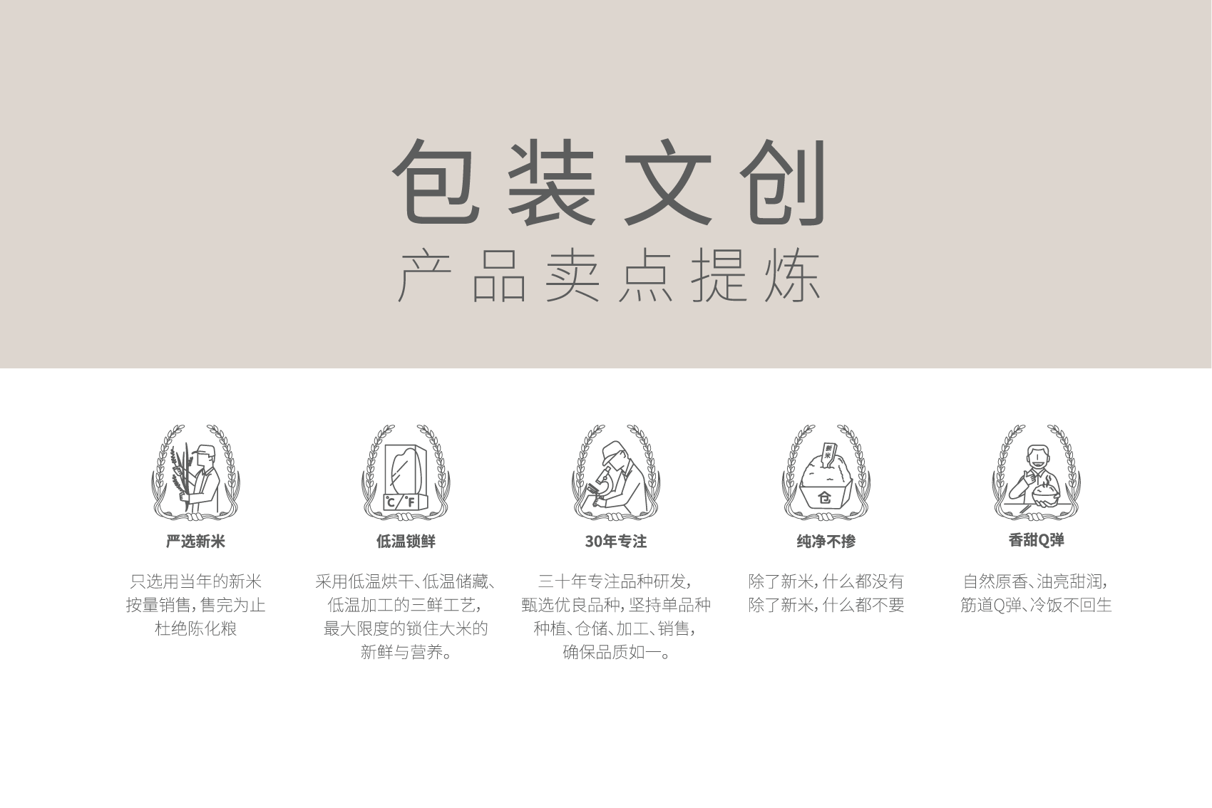 企業選擇旗下五款產品代表高中低三檔產品代表品牌,通過電商渠道拓展市場,并將其打造成線上爆款產品,從而帶動線下其他產品的銷售,前有多年經營品牌印象深入人心的老牌大米,如金龍魚、福臨門等,后有眾多品牌形象獨特完備的新型大米品牌頗具優勢,在競爭如此激烈的電商市場,如何找到既符合產品特點,傳遞自身優勢與市場的獨特占位?這成了企業束手無策的難題。