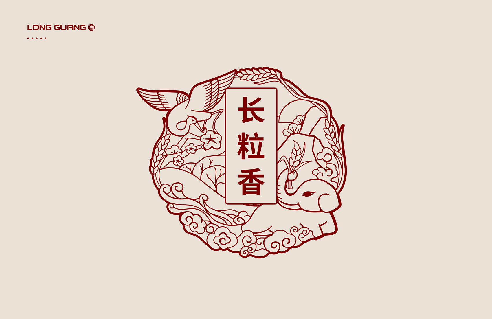 結(jié)合隆光大米處于品牌初創(chuàng)期的實(shí)際情況,突破同質(zhì)化的同時(shí)要拓展市場(chǎng),在不做過多的廣宣的情況下,一個(gè)美觀大方、易于傳播的超級(jí)符號(hào)是解決這一問題的關(guān)鍵。經(jīng)過頭腦風(fēng)暴后,繽策通過品牌名稱——隆光兩字溯源,了解到隆字有興隆、厚重之意,而光字代表光明,昌盛,兩字合二為一意為吉祥安康,產(chǎn)品為有機(jī)稻花香,高品質(zhì)的好米自然會(huì)為消費(fèi)者帶來(lái)美好的生活,美好生活自然讓人放心,所以隆光=安康=放心成為了隆光的品牌內(nèi)在價(jià)值邏輯。