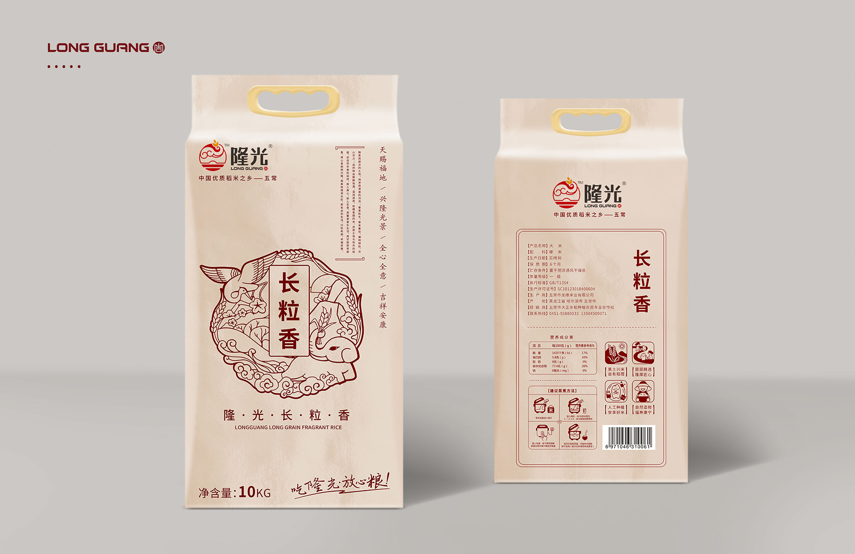 五常市大正水稻種植農(nóng)民專業(yè)合作社成立于2013年,位于黑龍江省五常市八家子鄉(xiāng)大亞屯村。主營(yíng)稻花香、長(zhǎng)粒香五常大米,旗下隆光品牌已經(jīng)通過注冊(cè)。 五常大米這一品類市場(chǎng)趨于成熟,競(jìng)品數(shù)量較多,競(jìng)爭(zhēng)較為激烈,企業(yè)將利用現(xiàn)有特渠資源,通過品牌化、品質(zhì)化雙管齊下打造口碑營(yíng)銷,未來(lái)將以線下專賣店為主,線上為輔的結(jié)構(gòu)進(jìn)行發(fā)展。產(chǎn)品原有包裝較為簡(jiǎn)陋,沒有完整統(tǒng)一的視覺符號(hào)無(wú)法傳達(dá)品牌形象,不能讓消費(fèi)者辨識(shí)到品牌,品牌基礎(chǔ)缺失嚴(yán)重。