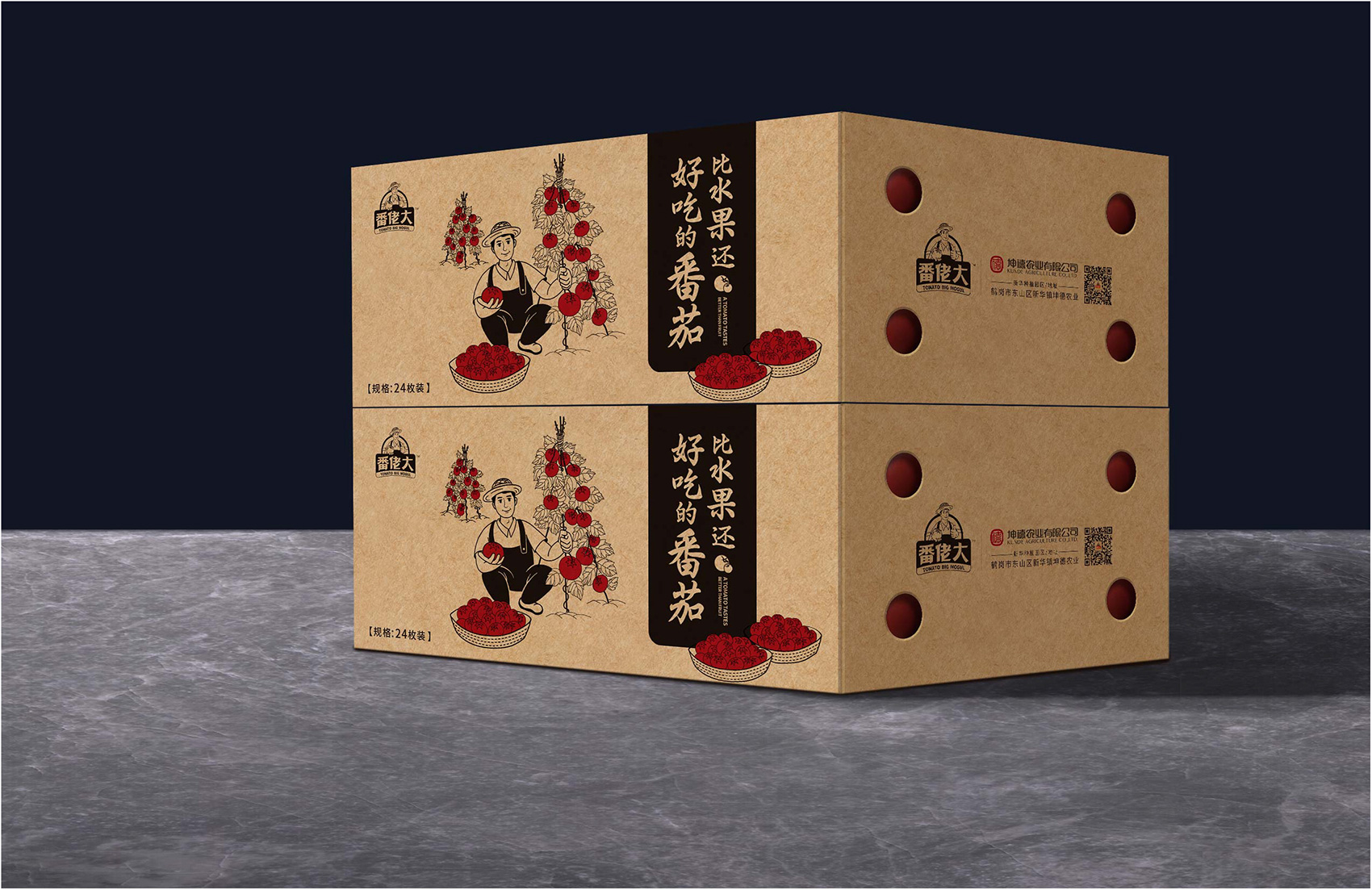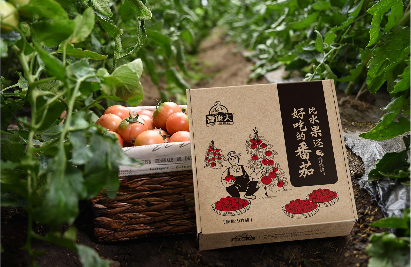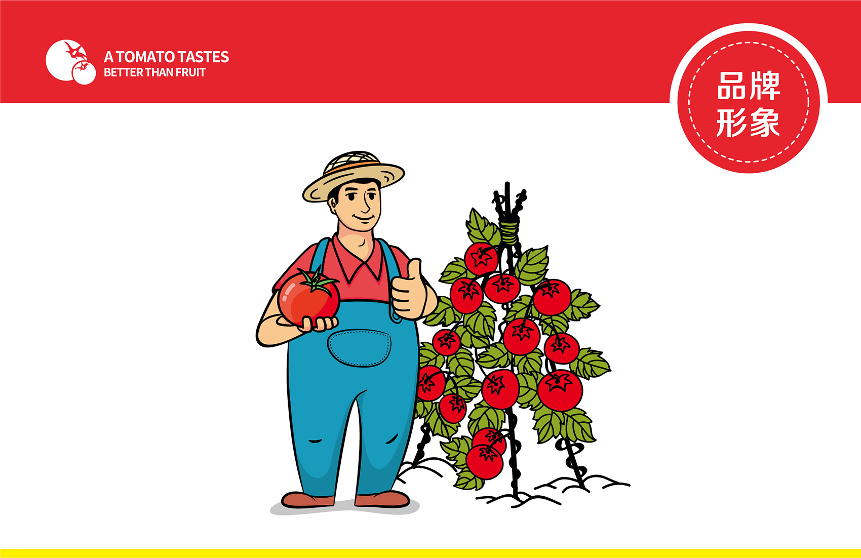 越來越多的案例告訴我們,那些擁有生命力的成功品牌大多數都擁有一個成熟穩定的IP形象,能將消費者的購買行為與品牌及IP所營造的故事連接在一起,讓品牌更具有人格化魅力,同時能夠快速拉近與消費者的距離,繽策原創設計出一個憨厚質樸的番茄農人形象來構建品牌IP,頭頂遮陽的草帽,身著背帶褲與紅T恤,面帶自豪的微笑,一手捧著紅艷艷的番茄,一手豎起大拇指,似乎在告訴消費者經過綠色種植、統一管理的品質番茄歡迎每一個人品嘗,將番佬大這三個字生動形象的表現出來,在終端應用中醒目惹眼,具有極強的親和力,并讓消費者能夠快速記憶。