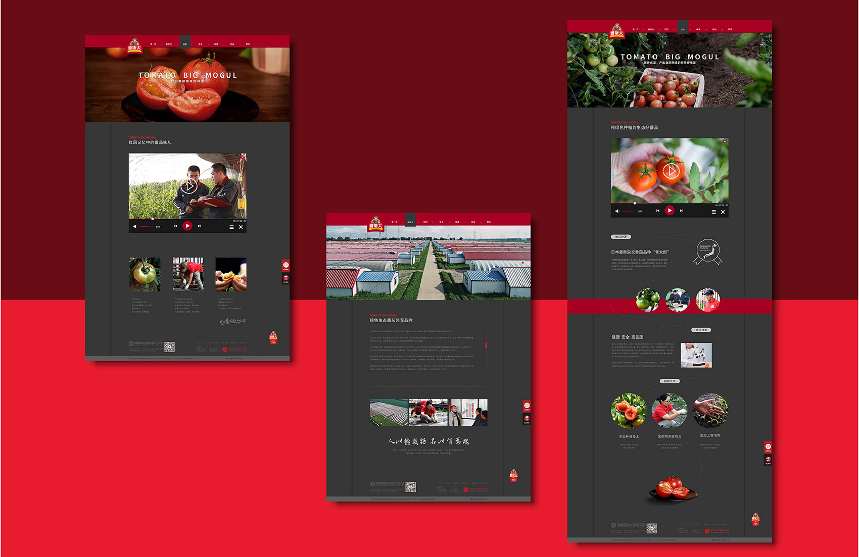 從功能規劃到網站的各級頁面,繽策給出的策略為“不繁只減”的思維,過多的渲染和無用的功能全部去掉,因為,這個社會都在流行著“微”,給予觀看者更為輕松快捷的賞閱體驗。品牌官網更需要直觀的讓消費者知道品牌的調性、品牌的主張,以及品牌的形象。繽策根據品牌主色調以及番茄的喜人的大幅面的商業攝影,直觀的讓消費之了解品牌內核和產品的特質。