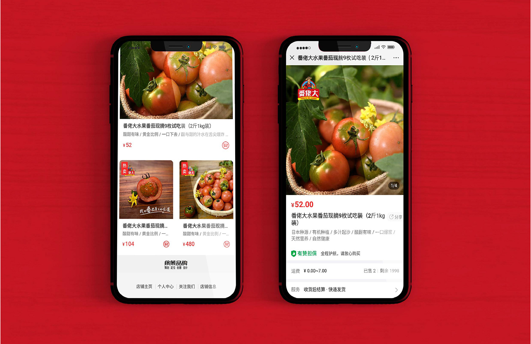 繽策著手有贊電商的規劃和設計的時,考慮到手機電商是“有贊“手機端的受眾群體是微信公眾號粉絲直接引流,并且線下實體店的顧客復購時在網上快捷下單的習慣。所以,繽策定義風格和界面為主流的年輕化色調以及卡通IP場景組合的風格。整體風格凸顯時尚、年輕、有趣、直觀。并加入了品牌的視頻創意,讓消費者更細致的了解并輕松購買“番佬大番茄”。