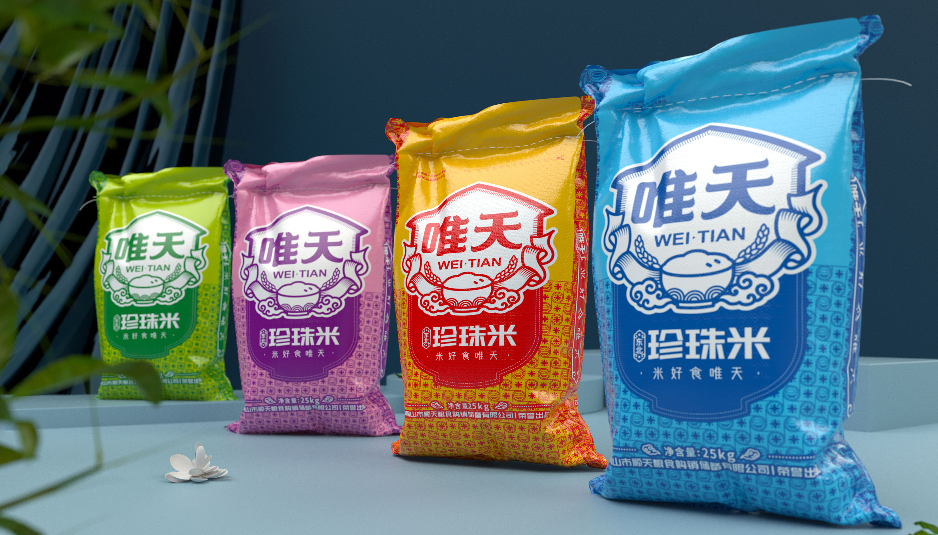 由于前身為國家糧食儲備基地,品牌基礎薄弱,僅有品牌名稱,體系缺失,品牌內核不清晰,即使在南方市場中與同類競品相比在品牌傳播力與視覺層面都處于弱勢;企業希望從名稱入手,以品牌的高度,將唯天提煉出一整套帶有營銷屬性的品牌符號、品牌口號與套系包裝,兼顧傳播力與美感的同時,通過品牌超級符號體系積累心智資產,進一步開拓發展目標市場。