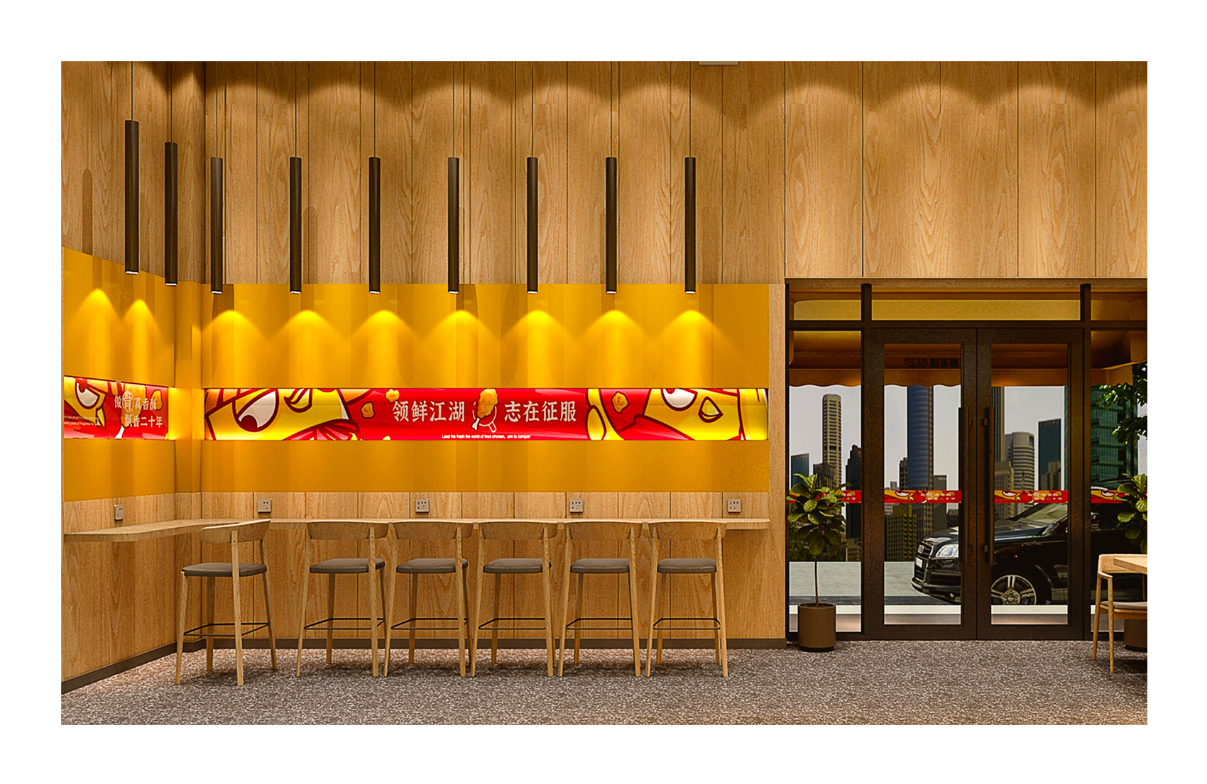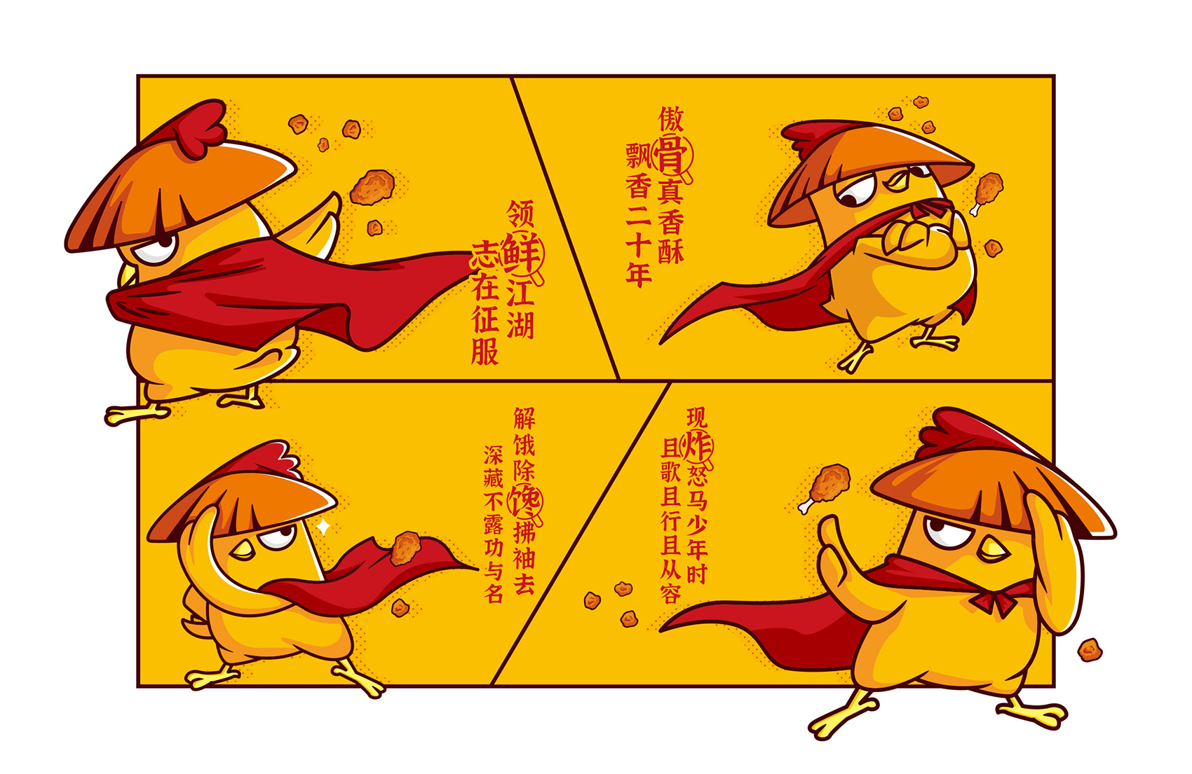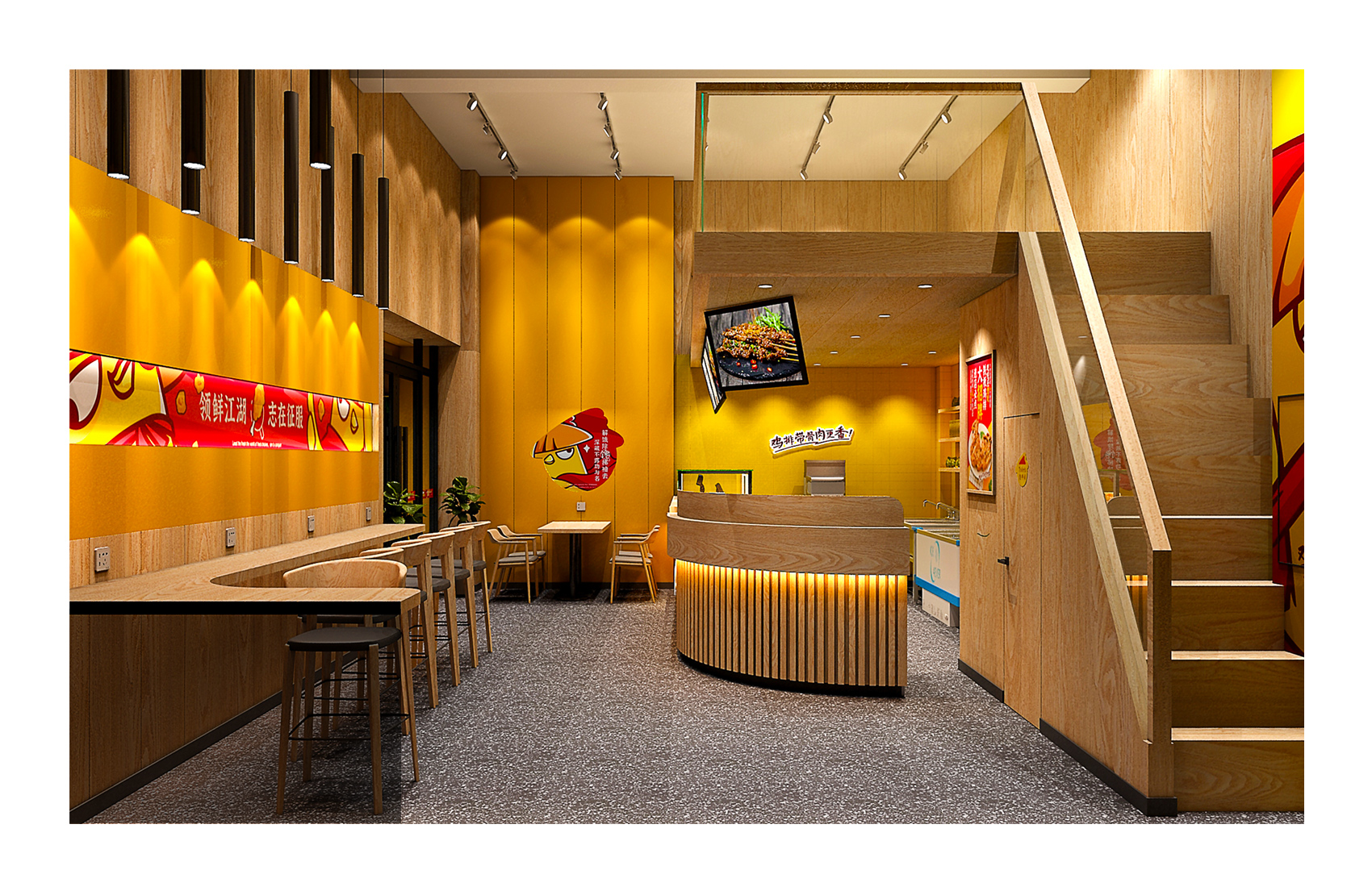 品牌所屬品類為小吃類,其中與其他競品的區(qū)別是產(chǎn)品帶有骨頭,這一點讓其目標客群被天然劃分即擁有大量空閑時間,牙口好的年輕群體,這些千禧一代從小就生活在互聯(lián)網(wǎng)之中,個性鮮明、注重體驗,偏好娛樂與社交的話題,對亞文化如動漫、游戲興趣更大,反映在消費觀之上,體現(xiàn)在更加注重品牌的趣味性,所以對于小吃的選擇不僅僅局限在產(chǎn)品本身的口味,更多的是是否能夠新潮時髦,方便打卡,從這一點入手繽策將品牌的所屬品類作為突破口,以時下受消費者喜愛的IP形象打造品牌形象并以此為延展,垂直化落入產(chǎn)品包裝與店面空間之中,讓品牌已完整的體系展現(xiàn)在消費者面前,目前品牌總部已裝修完成,店面進入運營階段。