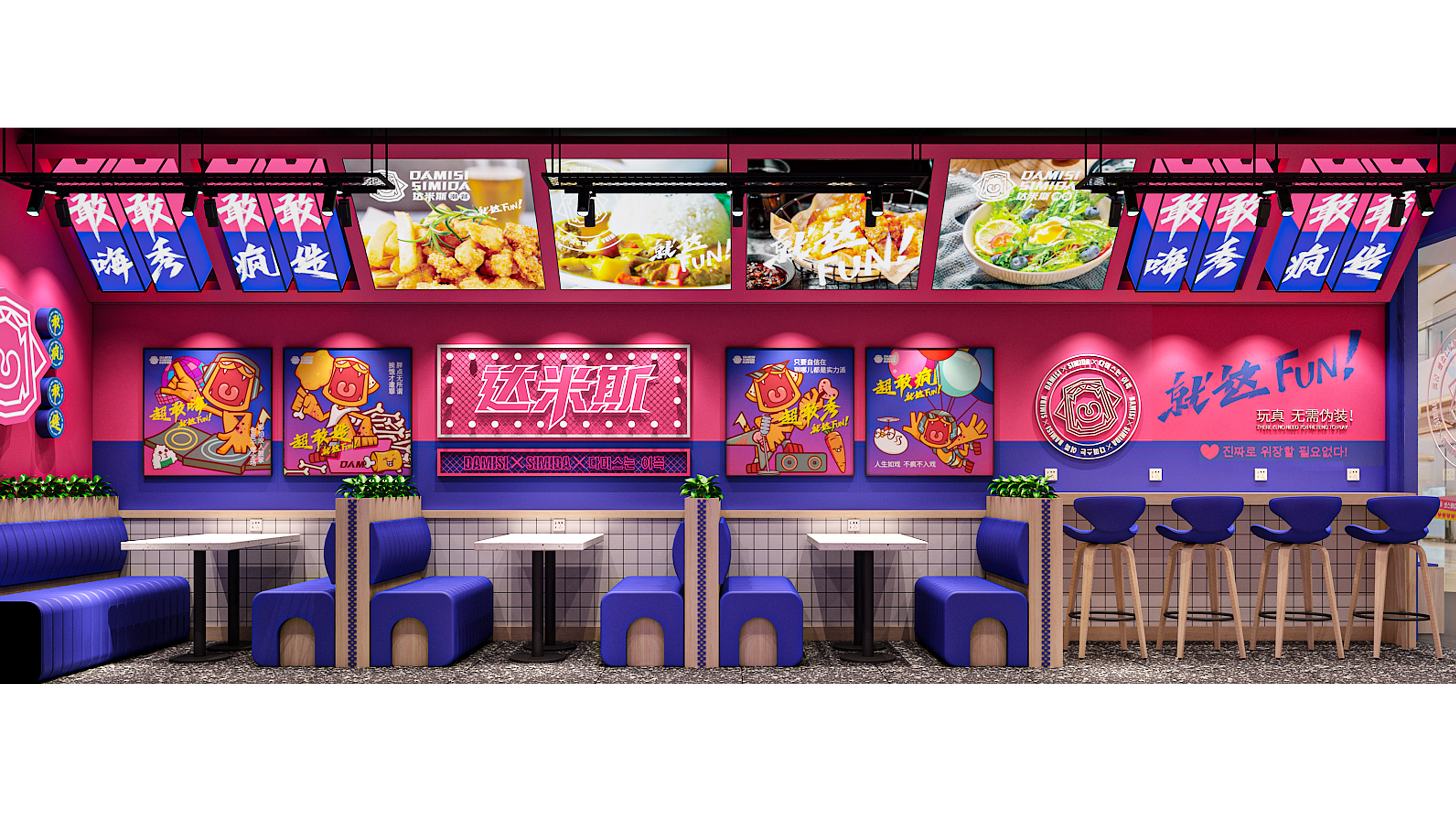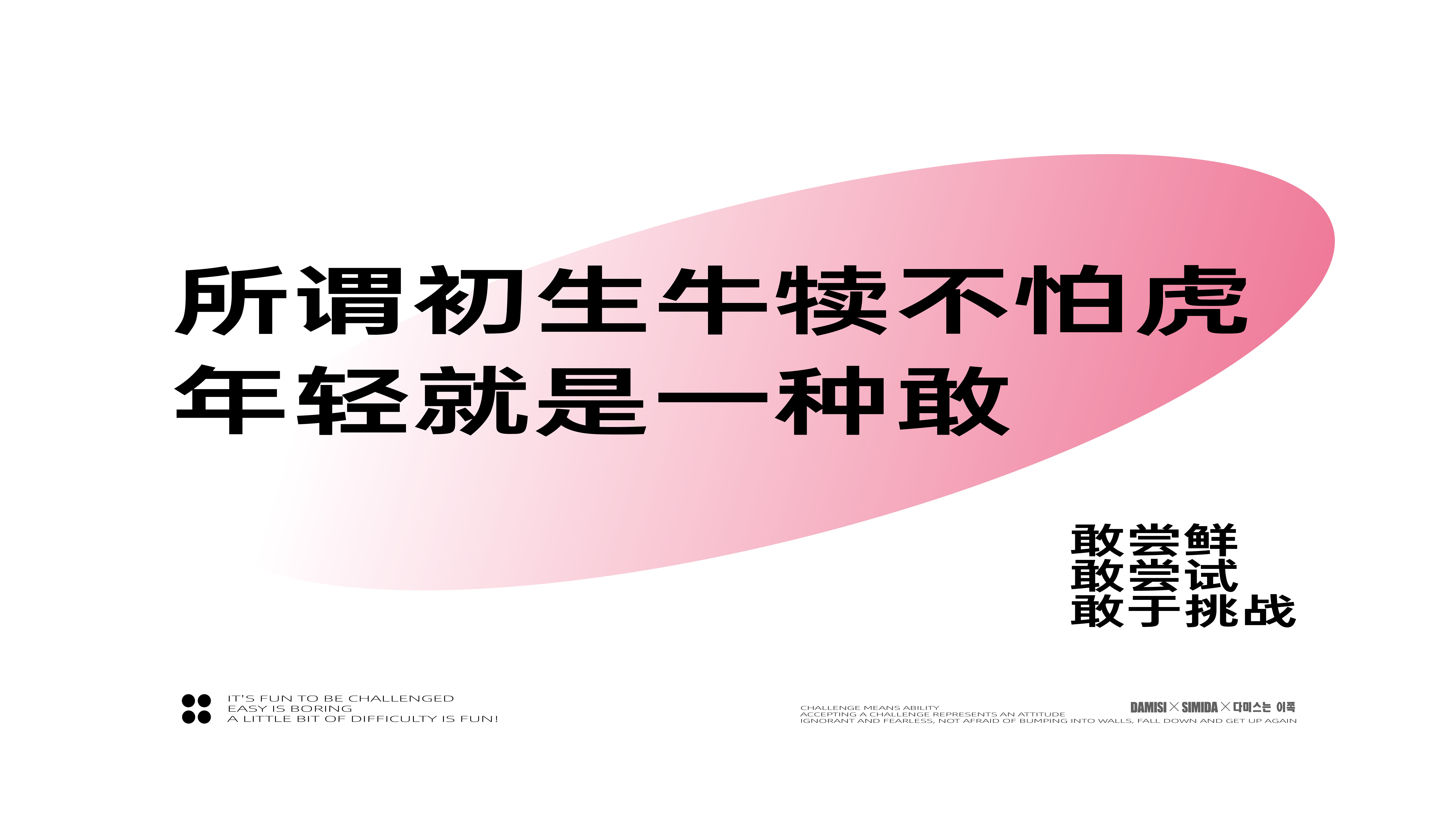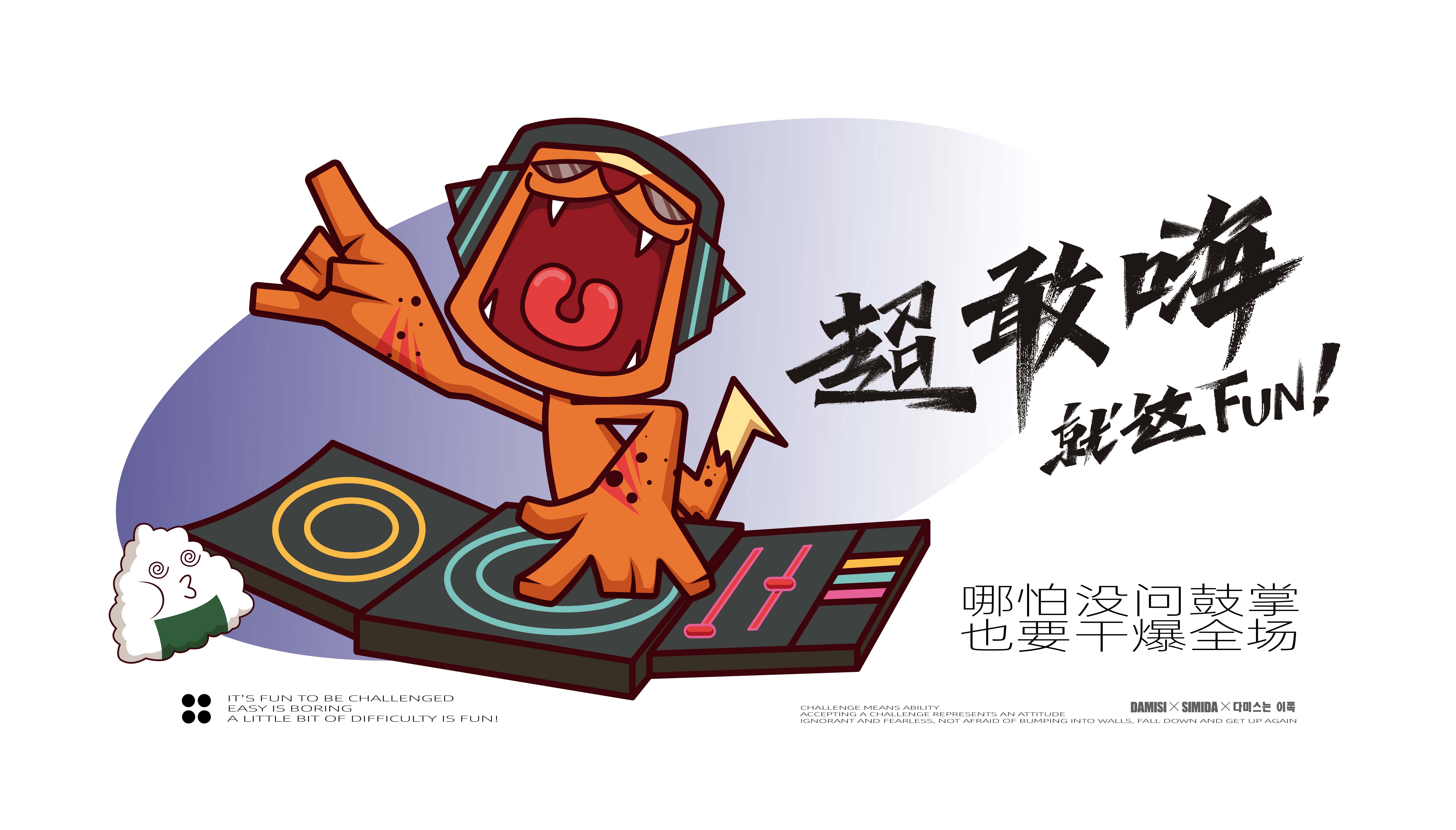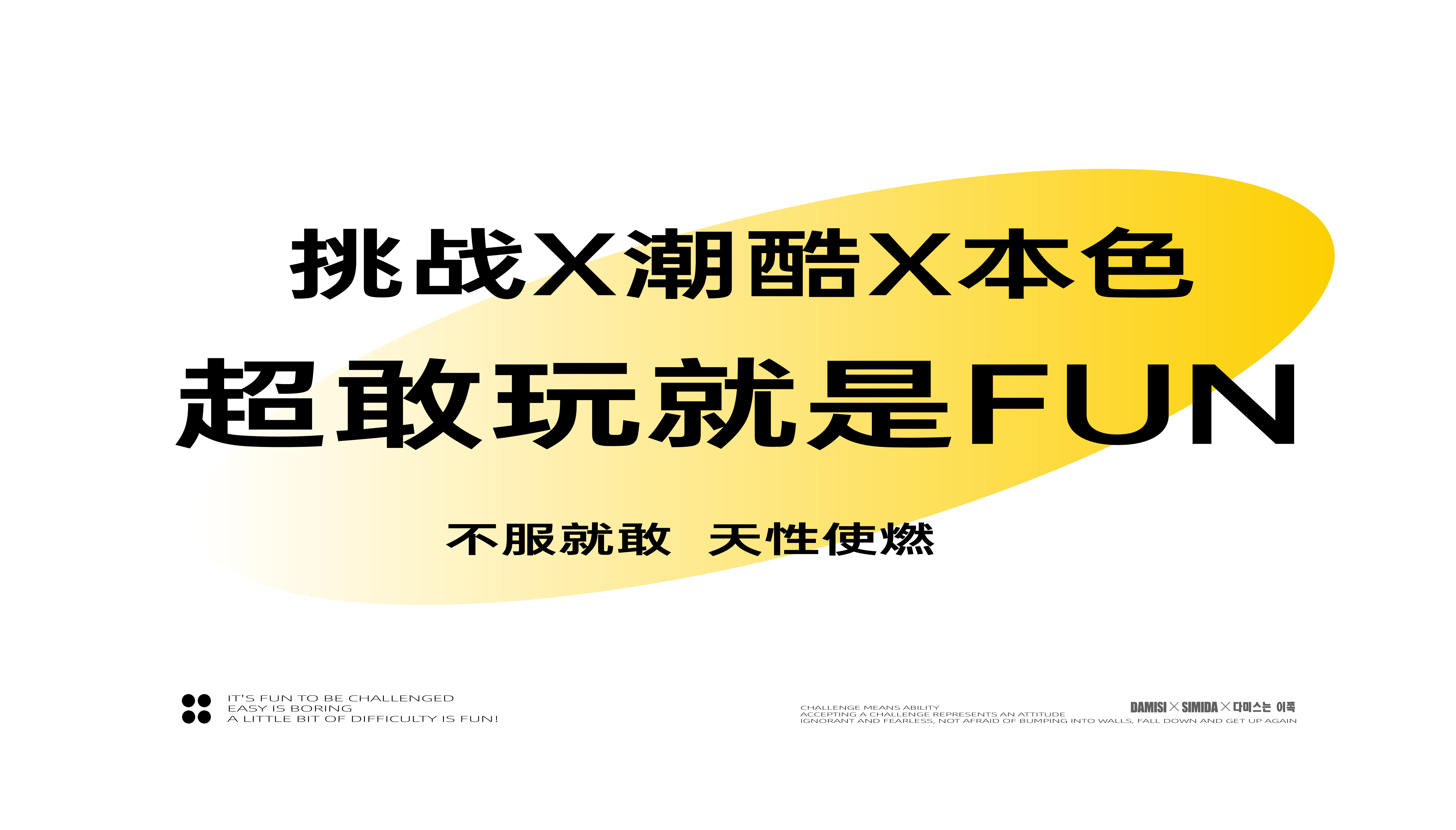 品牌的最總目的就是讓產(chǎn)品或服務(wù)自己在消費(fèi)者心中有力量、有溫度,將大眾轉(zhuǎn)化為品牌的忠實(shí)信徒,除了產(chǎn)品過(guò)硬以外,品牌內(nèi)核能否引發(fā)共鳴和認(rèn)同才是關(guān)鍵,面向年輕群體尤為如此。所以達(dá)米斯的品牌精神核心就要激發(fā)年輕人的認(rèn)同感,當(dāng)下95-00后年輕群體是互聯(lián)網(wǎng)的原住民,他們樂(lè)于嘗試、敢于表達(dá),尤其是對(duì)于自我標(biāo)簽和態(tài)度上尤為熱衷,取悅自我、展現(xiàn)個(gè)性是他們永恒的話(huà)題,通過(guò)產(chǎn)品出發(fā),繽策將品牌核心定位于FUN,關(guān)聯(lián)主產(chǎn)品的同時(shí),也包含熱愛(ài)、態(tài)度與樂(lè)趣的多重含義,將充滿(mǎn)反叛意味的鮮明風(fēng)格融入其中,結(jié)合受年輕人喜愛(ài)的IP形象共同打造品牌時(shí)尚、潮酷的調(diào)性,青春洋溢、無(wú)拘無(wú)束的搖滾豹張牙舞爪演繹著達(dá)米斯無(wú)所無(wú)懼的姿態(tài),張開(kāi)的大嘴極富趣味性。同時(shí)將IP元素系統(tǒng)地植入物料及空阿金,對(duì)比突出、層次鮮明。從視覺(jué)層面、營(yíng)銷(xiāo)賣(mài)點(diǎn)及品牌調(diào)性上全面與競(jìng)品形成差異化表現(xiàn),使其脫穎而出。