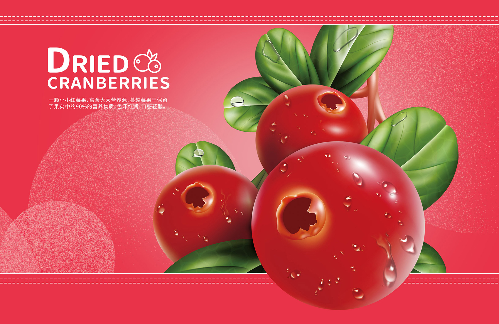 包裝以簡潔突出的版式刻畫了新鮮飽滿的蔓越莓與藍莓,配以與產品同色系主色調,營造出柔和輕快的氛圍,符合目標終端消費者的偏好與審美;將紅潤可愛的果實放置于畫面中間與logo形成互相照應的關系,使整體畫面和諧統一;半寫實的風格配合圓潤規整的字體,給人以整齊通透之感。修長柔和的袋型與同類產品在視覺上有所區別,同時便于擺放陳列。整體包裝主體突出,簡約流暢,配色明快,版式大氣,適用性強。