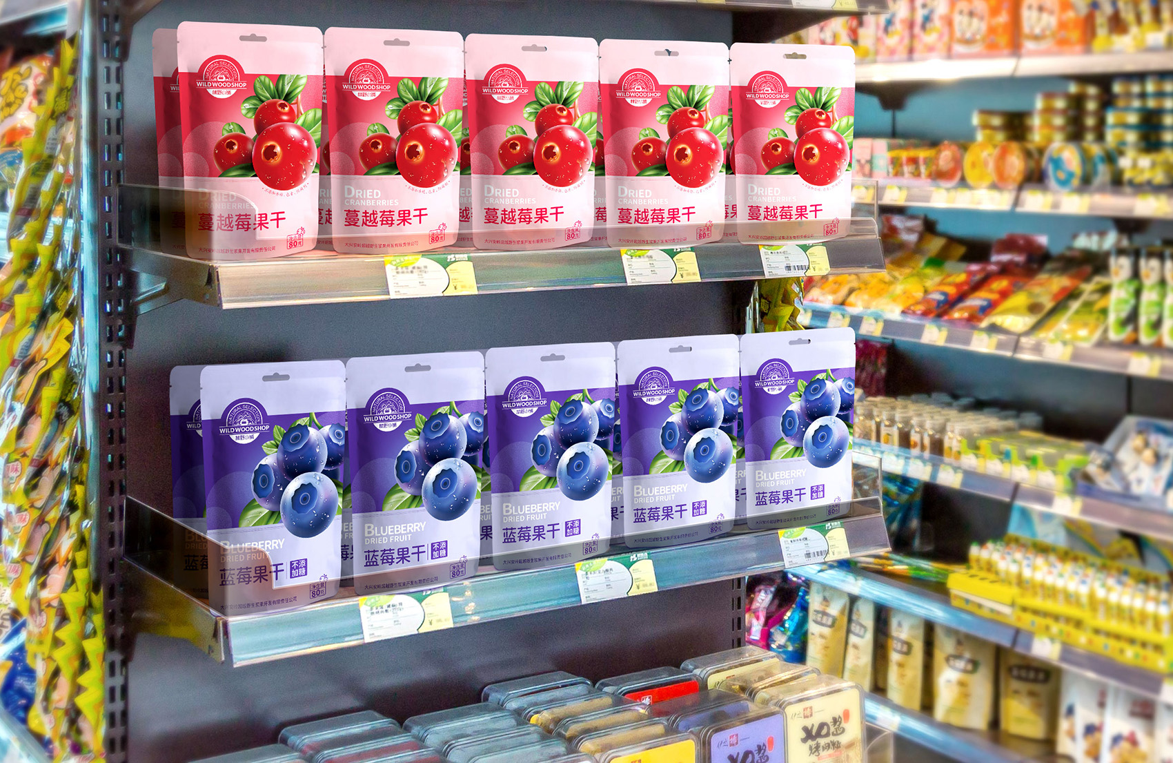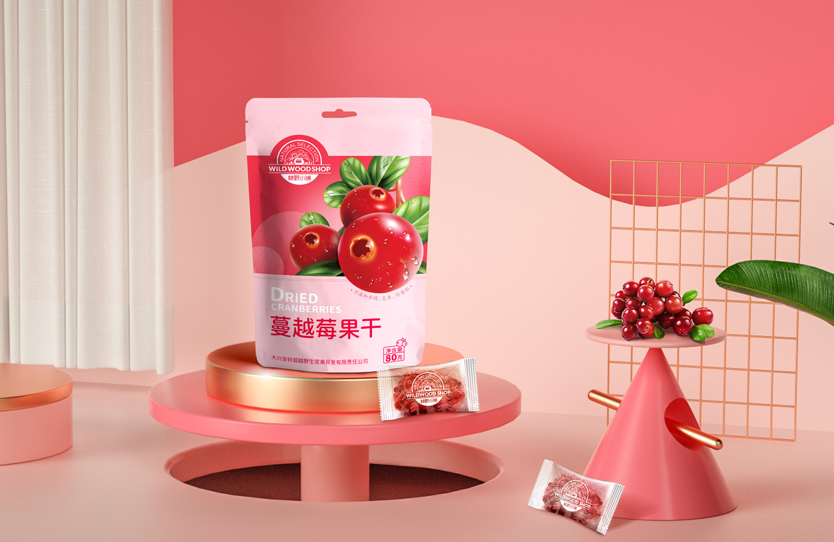 過詳盡的線上與線下調研,繽策發現莓類果干細分市場下,主流產品包裝以商業攝影為主,以實物來引發消費者聯想,以食欲策略促進購買。但由于同質化因素影響,很難讓消費者區別品牌之間的差異,消費者自然走向了價格傾向,所以與眾不同并凸顯品牌的存在是現階段幫助林野小屋脫穎而出的關鍵。繽策將插畫植入其中,以逼真的寫實3D風格展示品牌的獨一無二,在美觀的同時,讓人也能記住品牌,清晰簡潔的版式重點突出,讓人賞心悅目,幫助品牌凸顯產品的品質與格調,便于推廣與傳播。