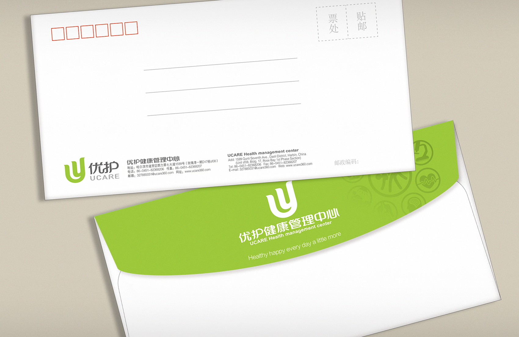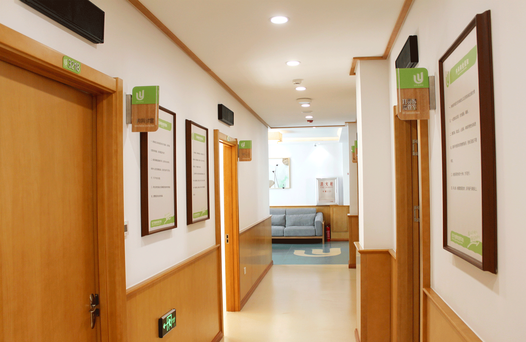 選用同色系的嫩綠作為主色調(diào),一方面凸顯出健康管理中心與優(yōu)護醫(yī)院的關(guān)聯(lián)性,另一方面在視覺上能夠直接了當(dāng)?shù)姆直娑邊^(qū)別,嫩綠色代表了新生與希望,表達了消費者在健康管理中的人性化關(guān)懷服務(wù)中獲得嶄新的健康狀態(tài)和生活樂趣,將品牌氣質(zhì)與品牌精神通過環(huán)境表達的淋漓盡致。